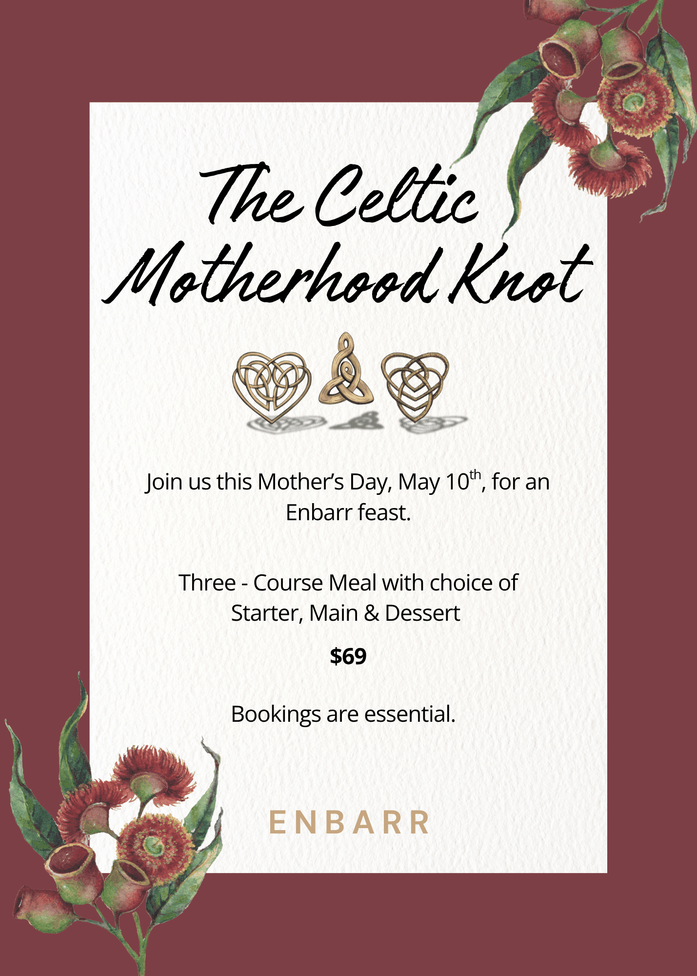 Join us this Mother's Day, May 10th, to celebrate all things motherhood. Enbarr is hosting a three-course meal with choice of Starter, Main & Dessert for $69. Treat your Mum this Mothers Day.